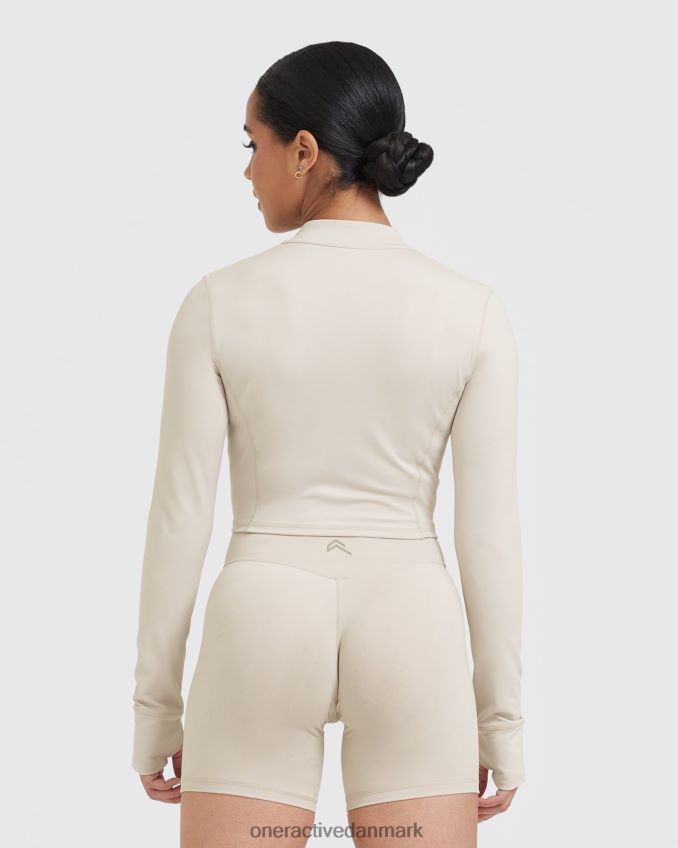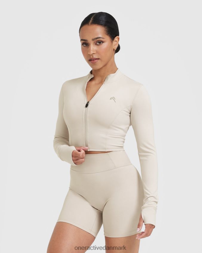 beskåret jakke med fuld lynlås og lange ærmer med tommelfingerhuller og flatterende sømlinjer for at fremhæve kroppens naturlige form