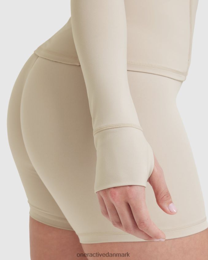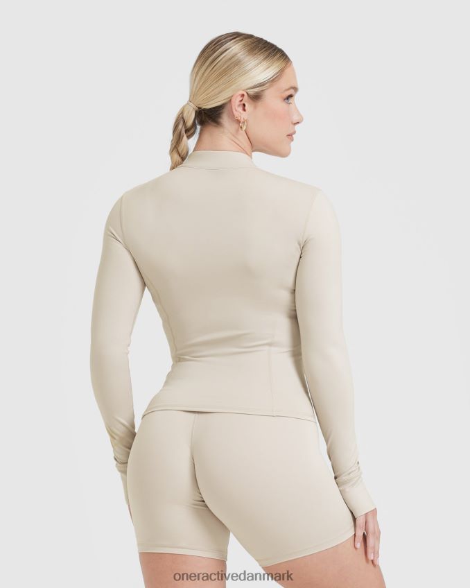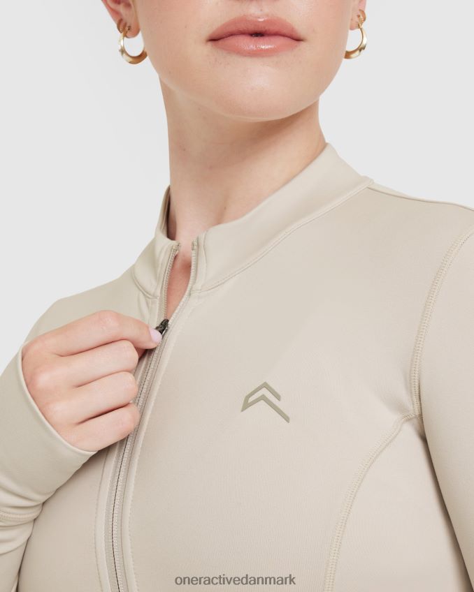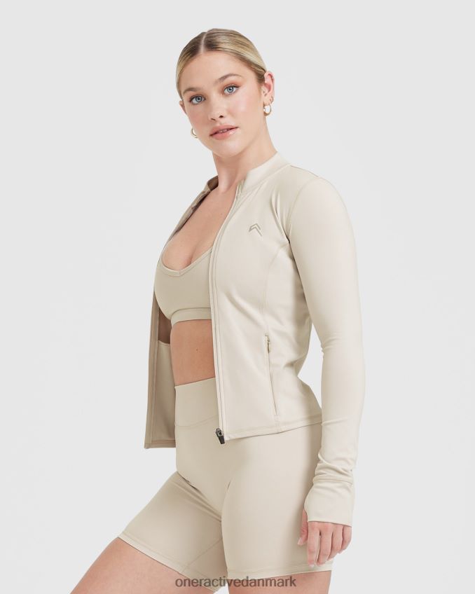 tilsiddende jakke med fuld lynlås og lange ærmer med tommelfingerhuller og flatterende sømlinjer for at fremhæve kroppens naturlige form